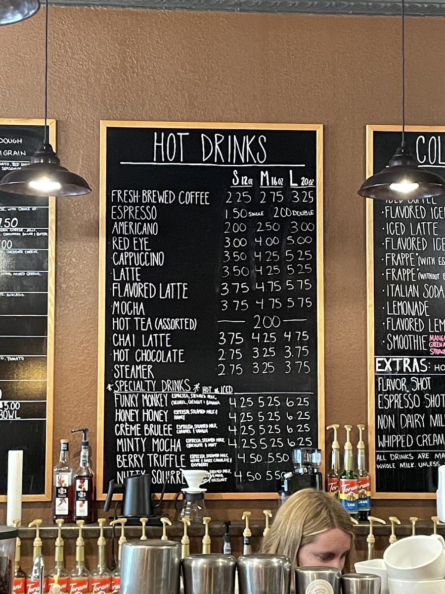 “ Newly reopened and renamed. (Formerly Mugs) Well done, subtle colors on the walls and the lovely fireplace still welcoming customers. Nice menu, sweet treats, breakfasty foods and sandwiches. Salads listed on board too. Good coffee. Seasonal pumpkin latte was yummy. ”
